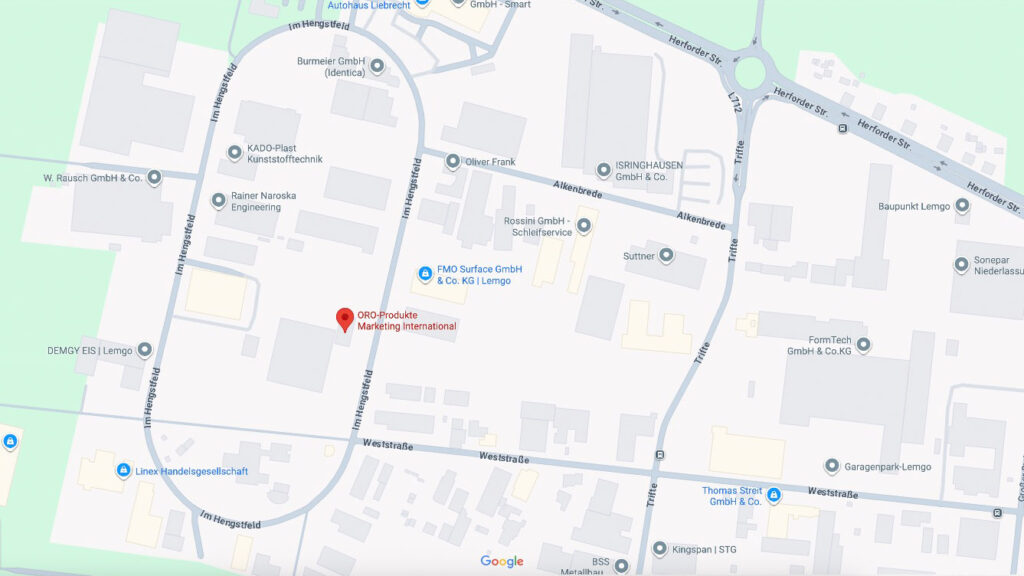 Kontakt ORO-Produkte Marketing International GmbH Im Hengstfeld 47D-32657 Lemgo +49 5261 28893-0 +49 5261 28893-48 info@oro-marketing.de Karte vergrößern